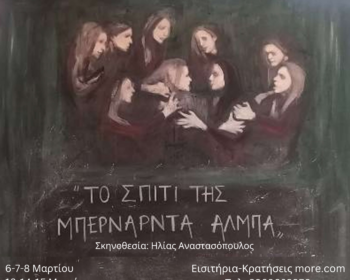Η θεατρική ομάδα του Πολιτιστικού Κέντρου Εργαζομένων & Συνταξιούχων ΟΤΕ Πάτρας ανεβάζει το έργο «Το σπίτι της Μπερνάρντα Άλμπα» του Φεδερίκου Γκαρθία Λόρκα σε σκηνοθεσία Ηλία Αναστασόπουλου Ο σκηνοθέτης αναφέρει για το έργο: Το σπίτι της Μπερνάρντα Άλμπα είναι ο ορισμός της χειραγώγησης στην οικογένεια, και κατ’ επέκταση της…
